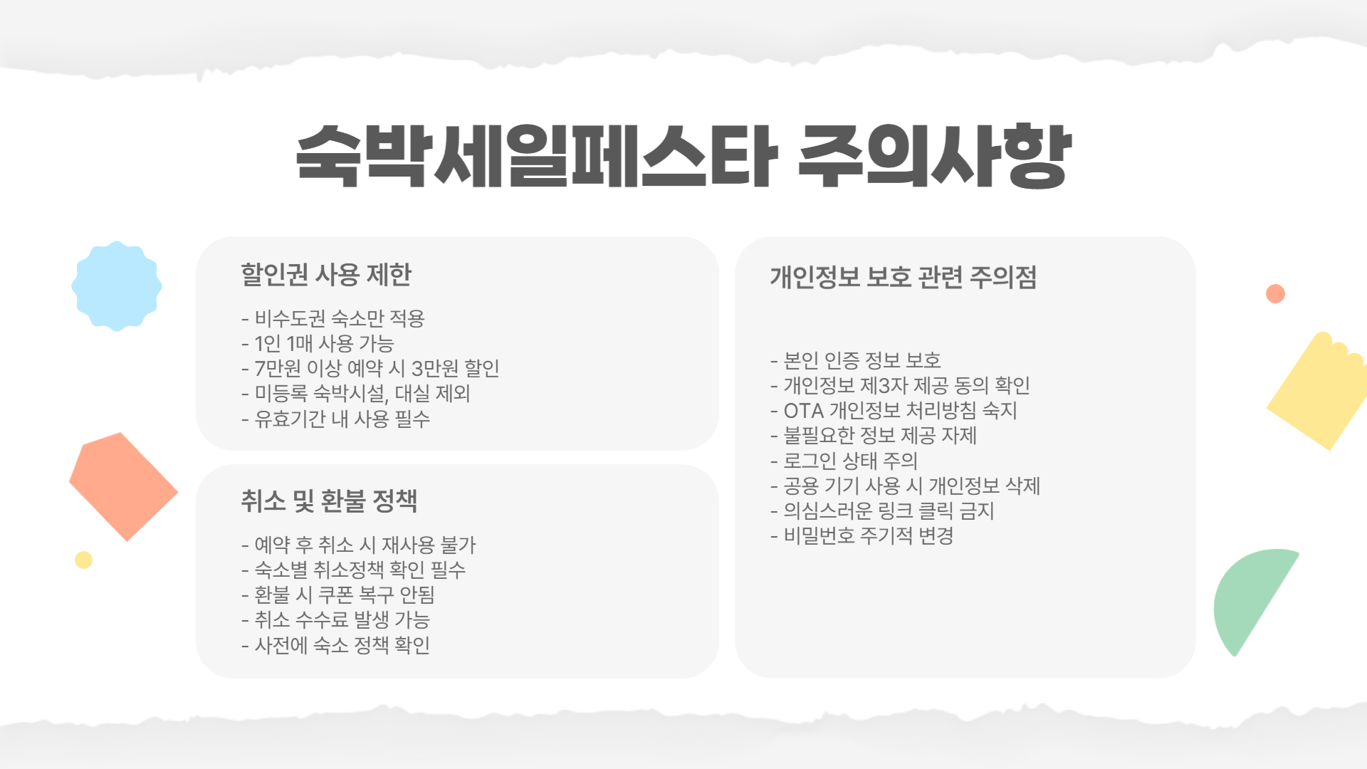 이번 숙박세일페스타 숙박할인권에 숙박어플 자체 추가 할인혜택까지 꼭 확인하시기 바랍니다.