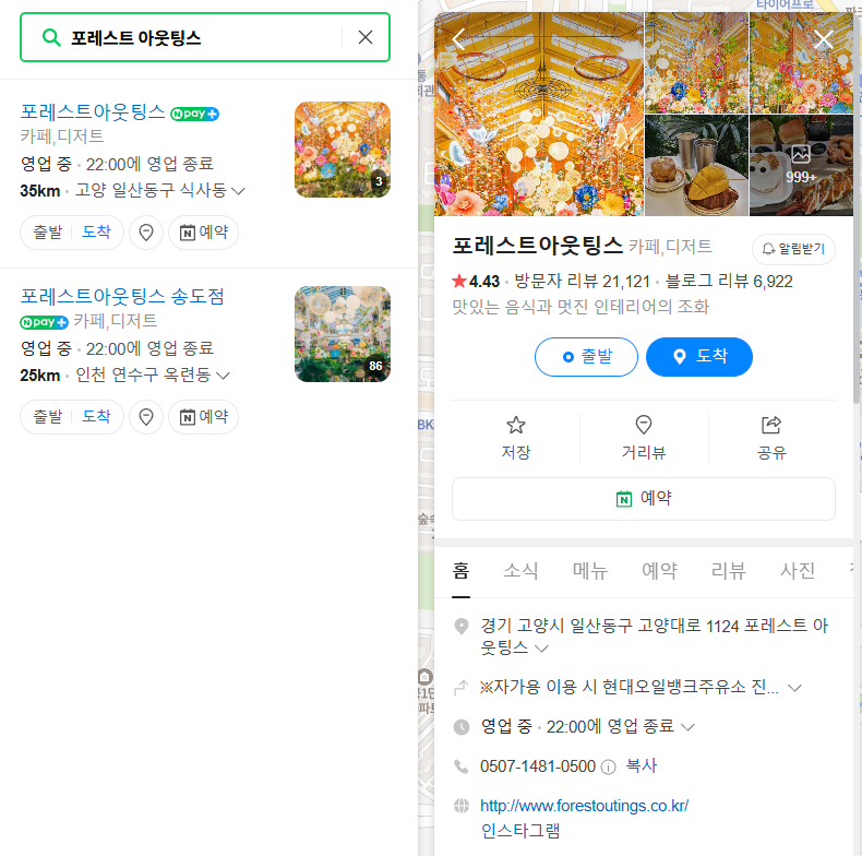 2. 포레스트 아웃팅스 송도점 – 대형 베이커리 카페